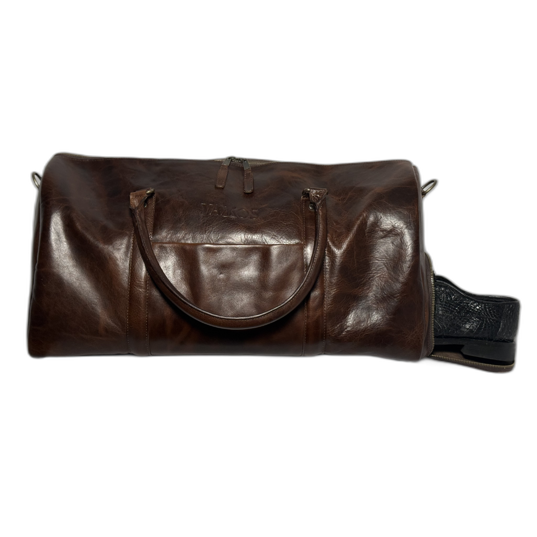 The bag is beautiful! Outstanding craftsmanship and quality material! I'd been looking at leather duffels for a while and finally decided on this one and could not be happier! Even includes a bag to protect it while not in use in my closet!