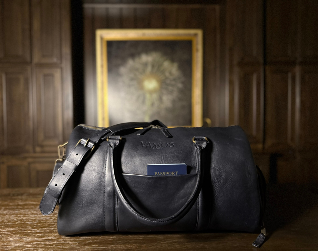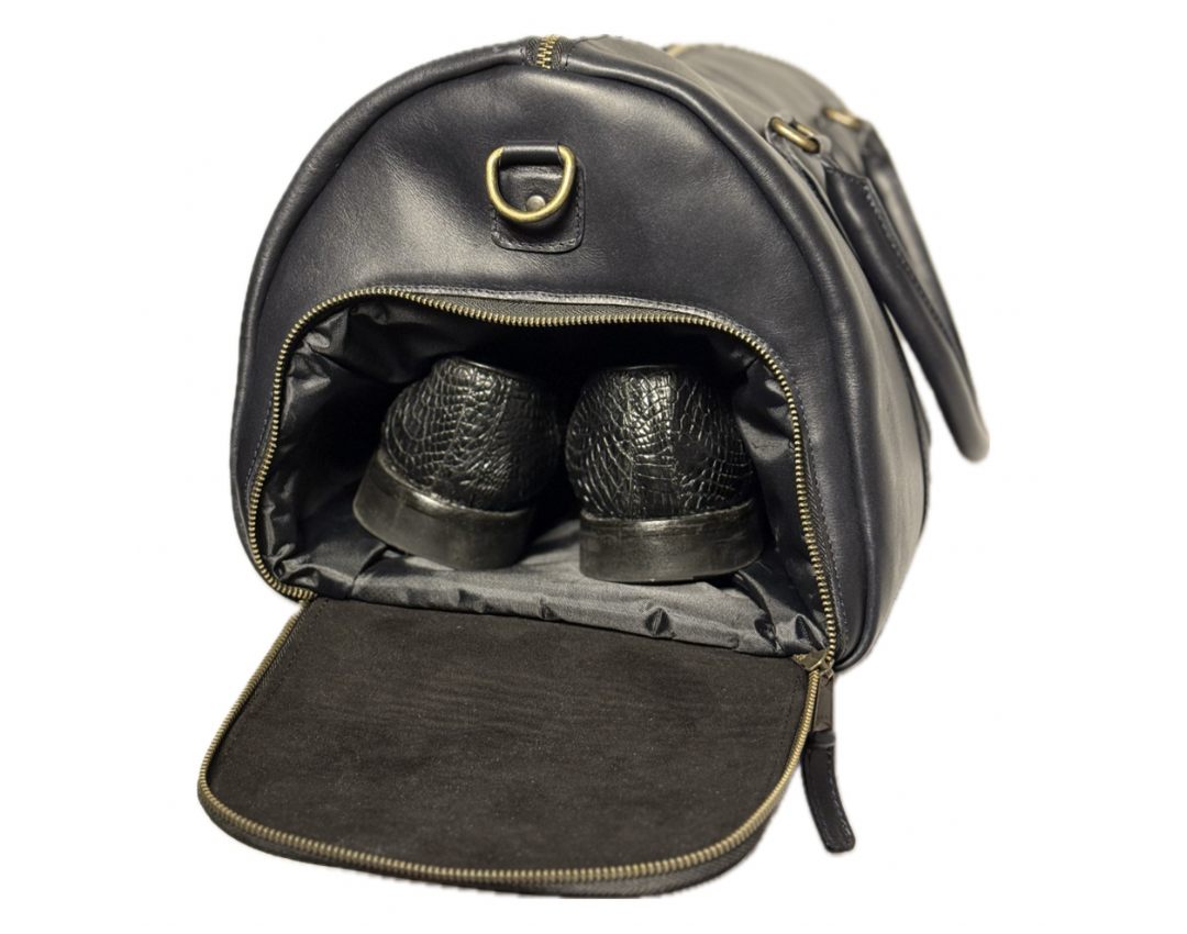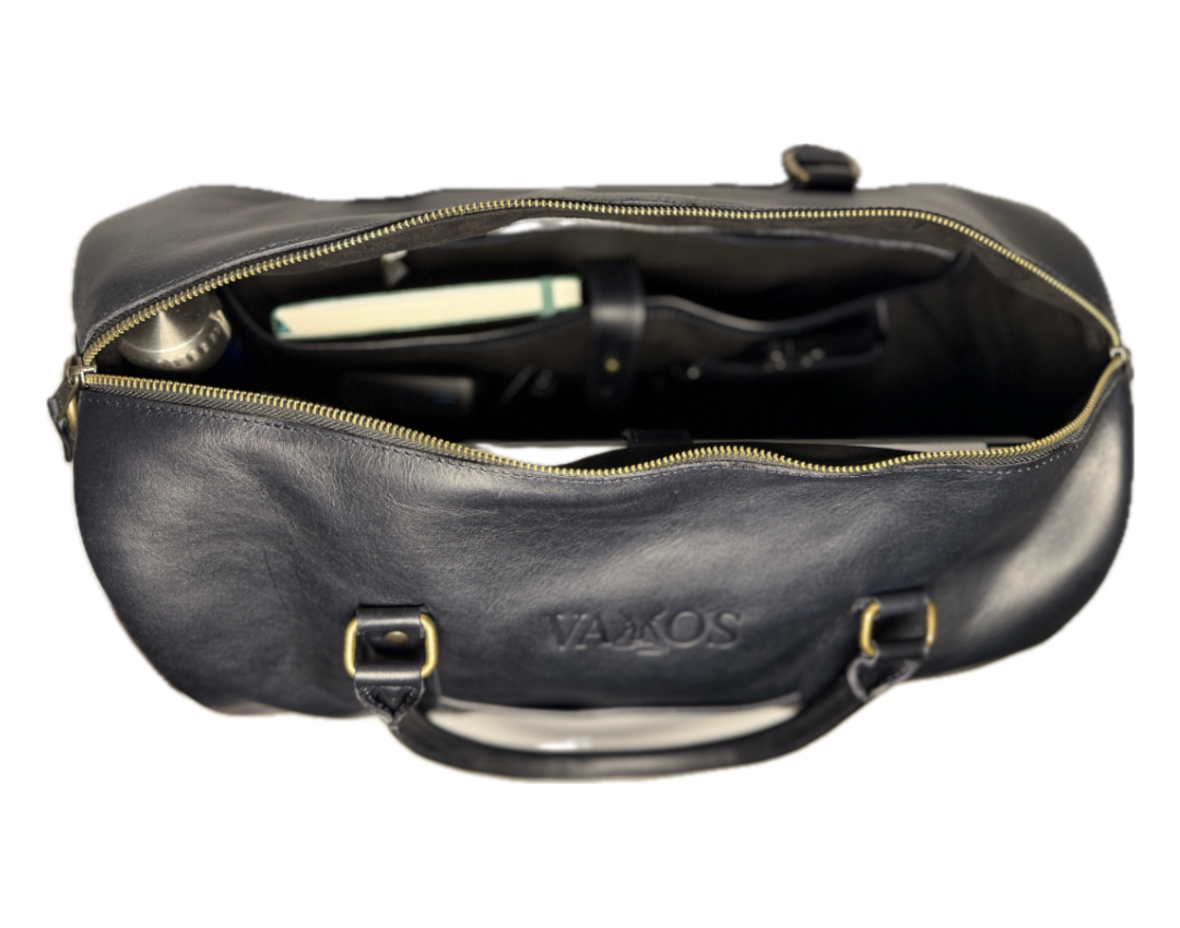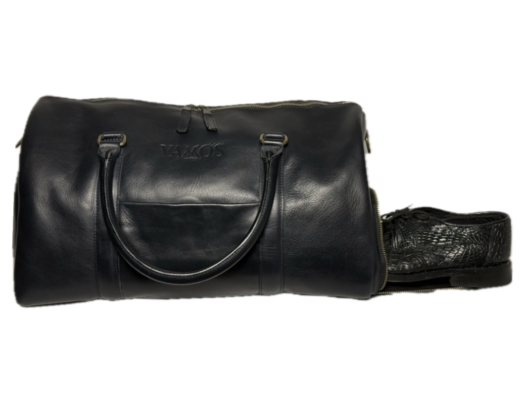 - Our Midnight Azul duffle bag is crafted from vegetable-tanned, full-grain cow leather. Featuring a striking pull-up effect and a waxed finish, it offers a rich, supple texture that exudes a unique appearance and durability.
