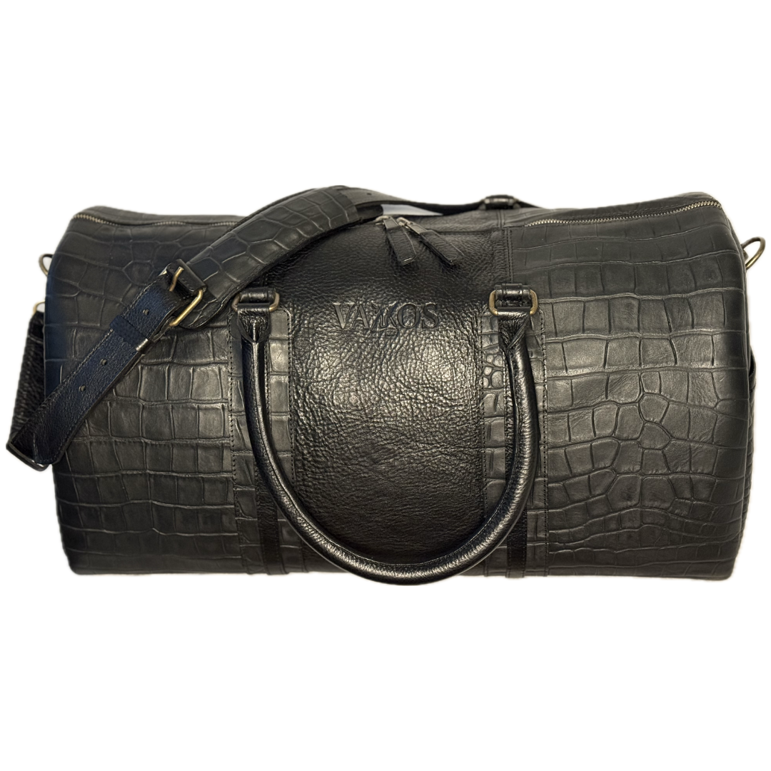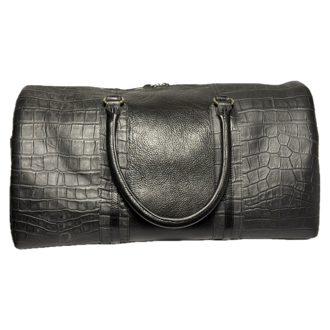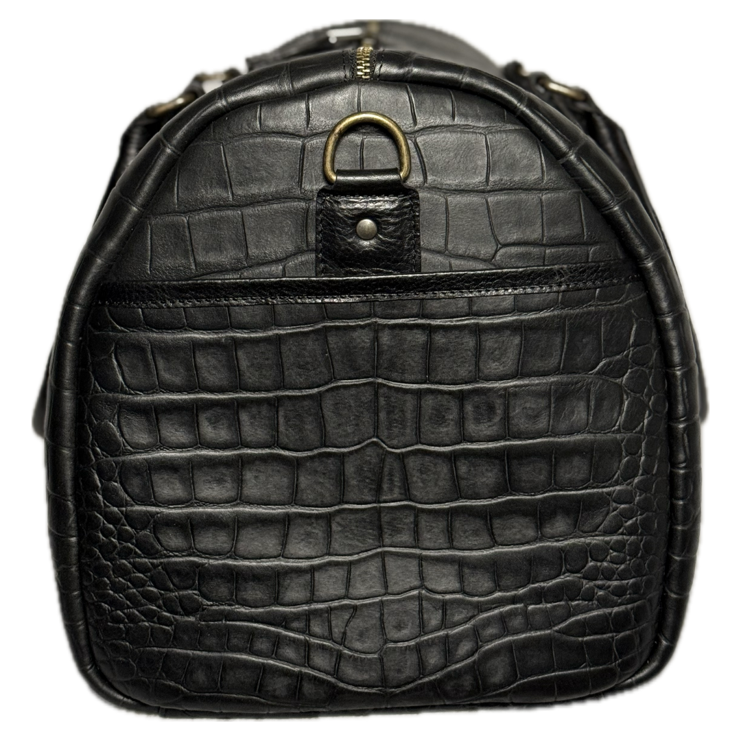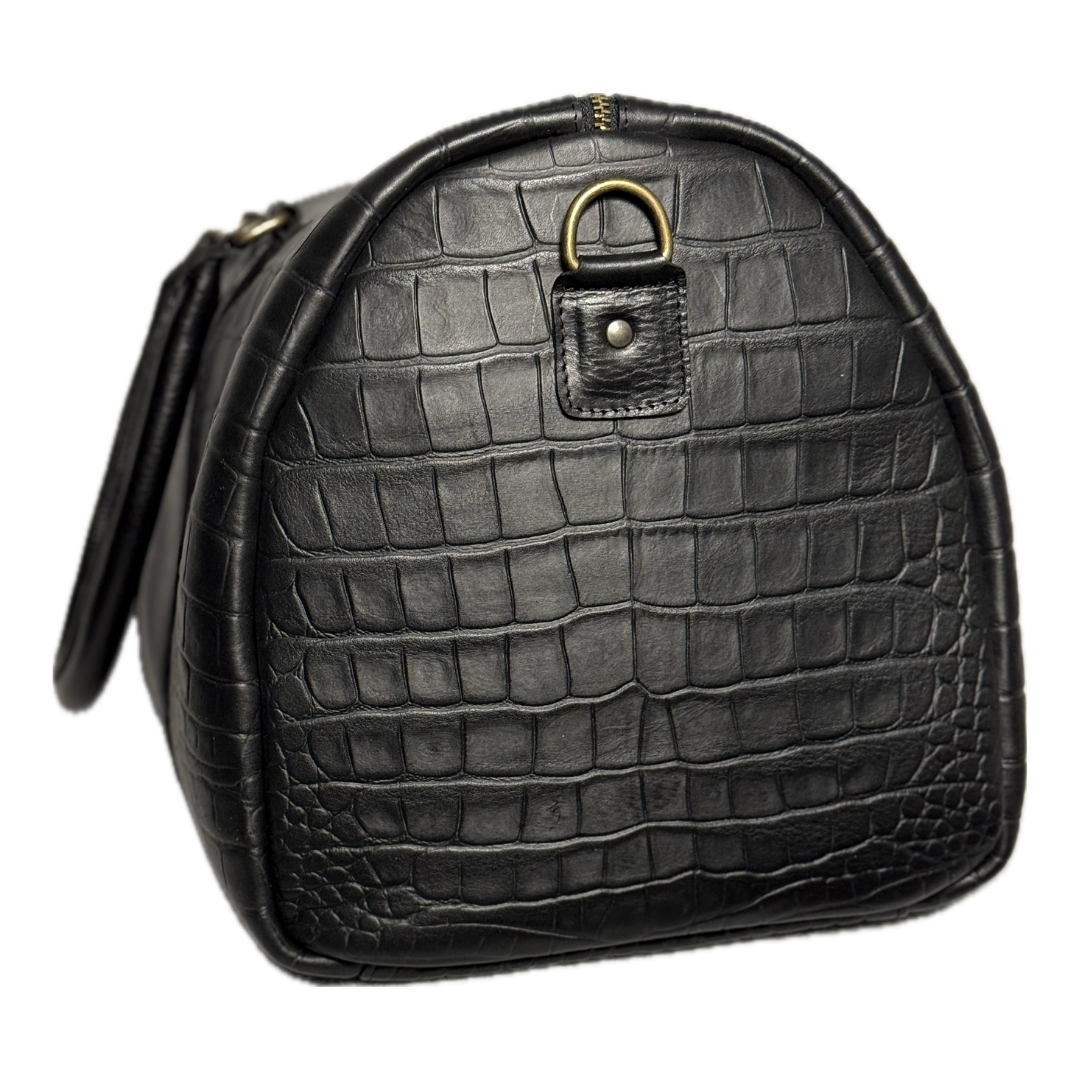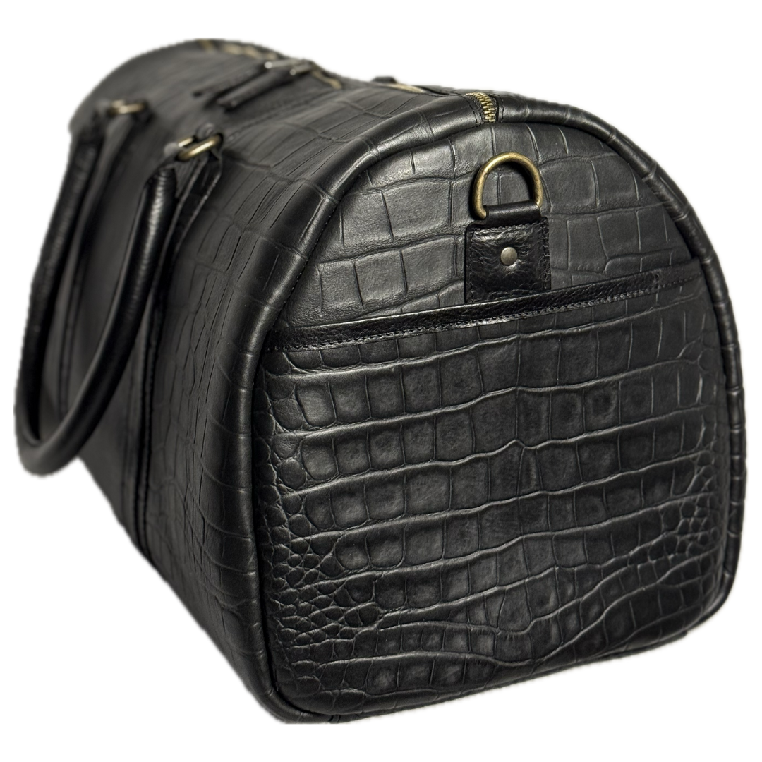 - Crafted with precision and care, this piece features full-grain vegetable-tanned leather embossed with a striking crocodile pattern. The central section showcases a chrome-based leather, skillfully vegetable retanned to enhance durability and elegance. The base is treated with a wax finish, delivering a refined touch and lasting appeal.