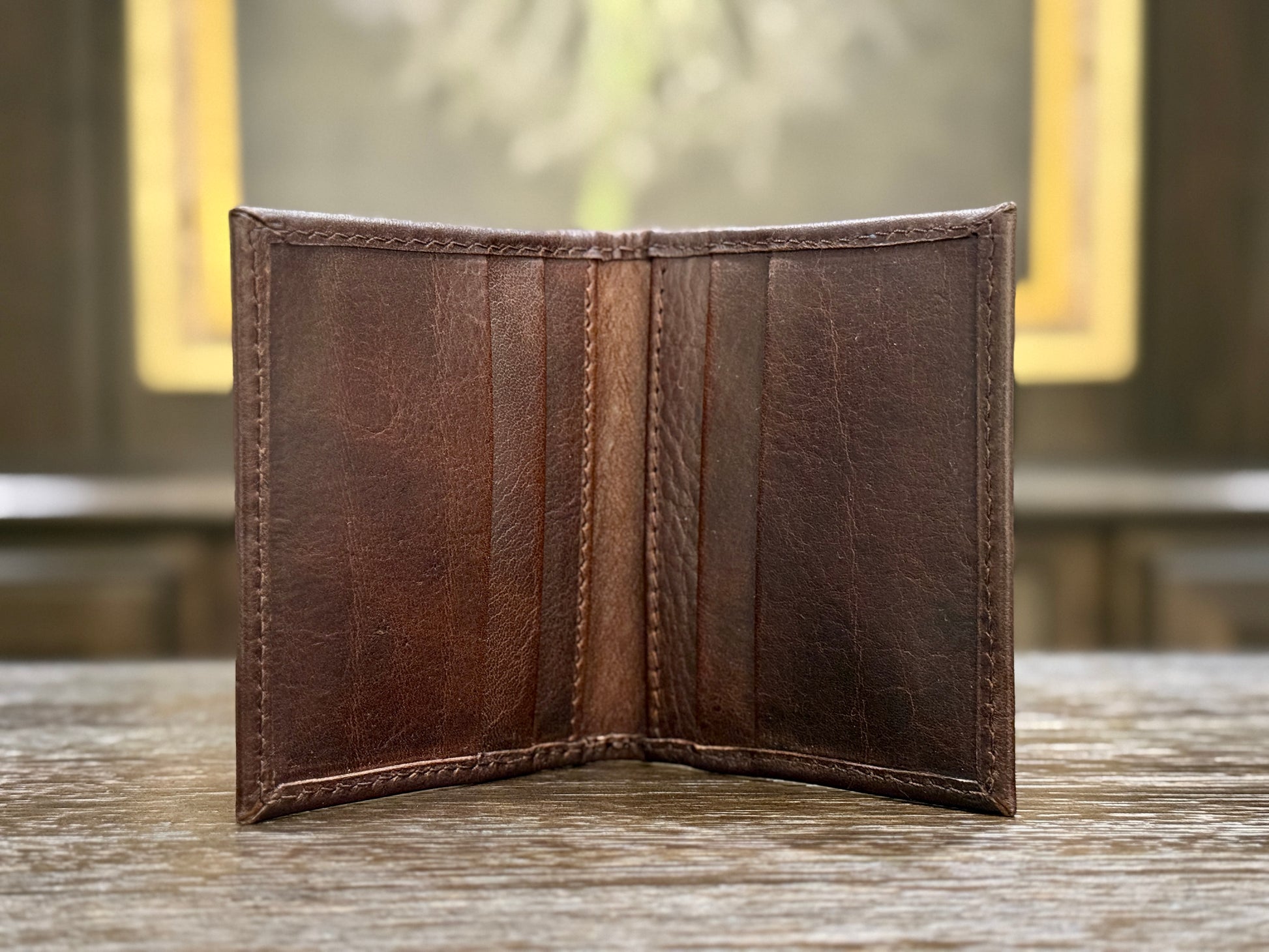 - Experience timeless craftsmanship with our vegetable-tanned, full-grain cow leather wallet. Handcrafted by skilled artisans in Mexico. Note: The dark brown leather is made from full grain Buffalo and is chrome tanned. All other colors are vegetable tanned. Patina Effect: Our vegetable-tanned leather wallets develops a rich patina over time. Exposure to sunlight, oils, and daily handling will gradually darken the leather, making each wallet one of a kind. The natural colored option will become light/dark brown over time.