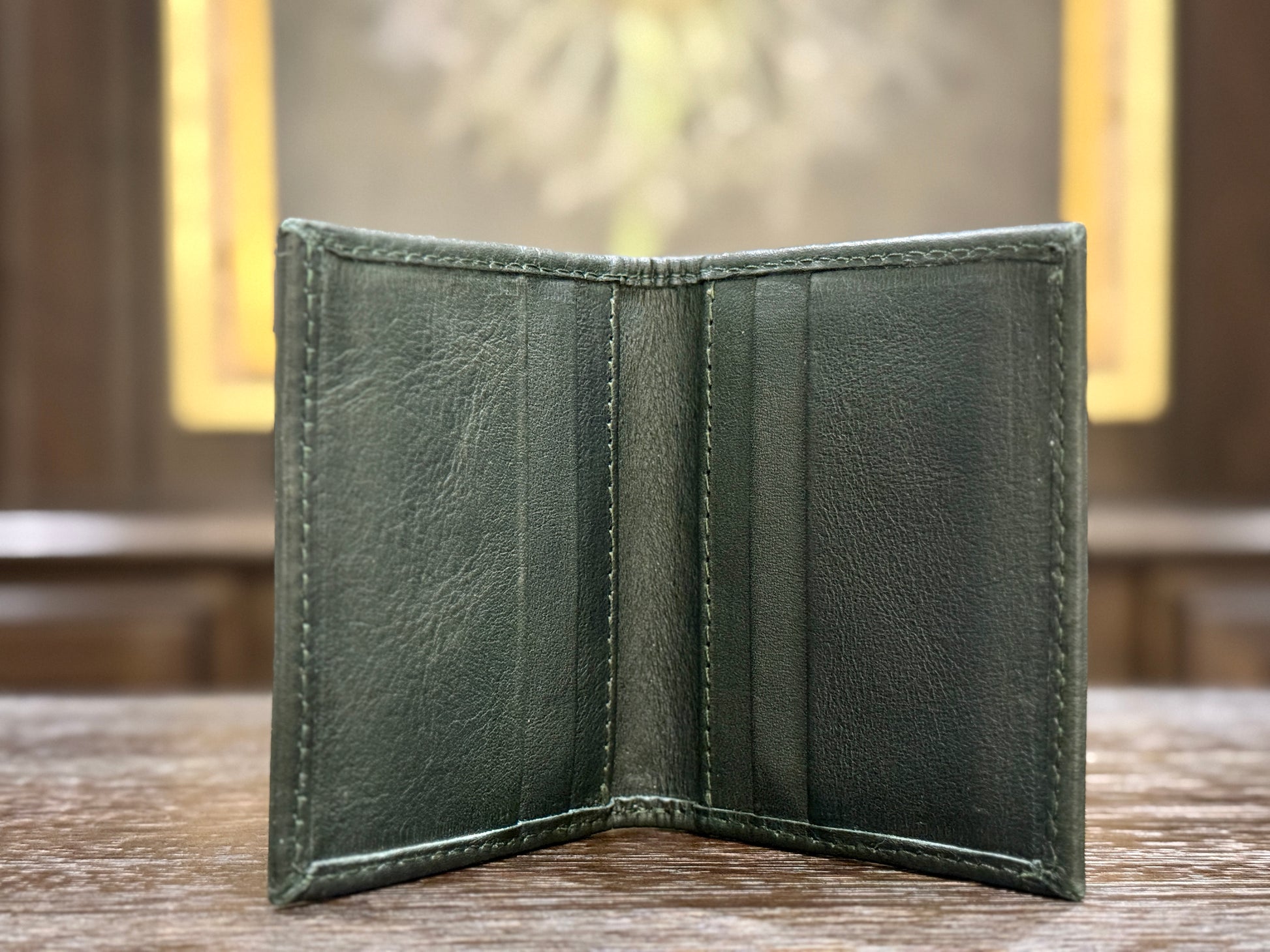 I am loving this new wallet, especially the green color. I don't believe there are wallets out in the market with this color. Nothing beats the smell of new leather. The wallet is slim, just the way I like it, as I don't like a bulky wallet. It fits all my cards, and the knitting is secured and leaves everything inside intact. Emanuel, the owner, is easy to work with. He is transparent and made sure all my questions were answered about this product, and even took the time to explain how the leather was made, before I confidently invested in it. The price is fair for the high quality material that I am receiving. The shipping was fast, and I received it earlier than expected. Highly recommend this wallet, and I am considering buying it as a gift for my family members as well. I will be looking into more products from this company. Thanks Vamos Next!